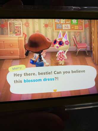 Kelly: lol I give the frilly dresses to my peppy villagers (mostly merry) but I think I’ve over gifted her because look at her now 😂