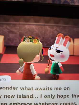 Tiffany is in boxes today if anyone would like to offer her a new home. She's a lovely, snooty villager. Her home is sort of...sports bar-themed I would say? Darts, pinball. That sort of thing