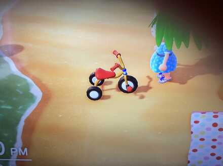 I think I have the tricycle you’re looking for. I have a grey toy box. If you have the wooden block toy, you make it colourful by customising it.
