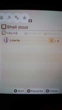 Shell stool is made of 5 cowrie shells.