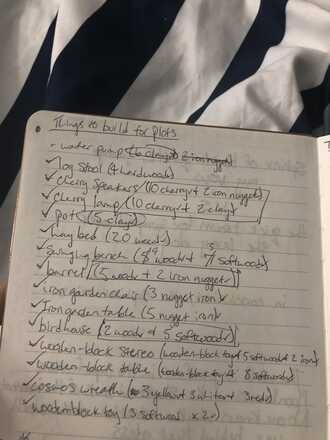 hopefully this photo isn’t too blurry!! it has all the recipes for the different things you need for plots