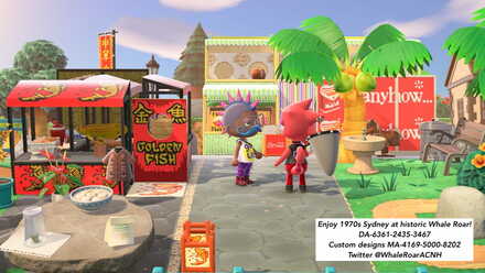 Experience 1970s Sydney, Australia on our historic island, Whale Roar! DA-6361-2435-3467 See the protests, catch a ferry, pop in to the local shops, have something repaired, get a tattoo, enjoy the bushland, pick up the rubbish, avoid the construction and much much more. Six fully decorated player houses: a suburban home, a share house and night club, a pub, a community centre, a derelict gasworks and a pottery shop in an old chapel. All animal resident houses have been refurbished too.