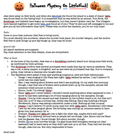I made a murder mystery on my island, come play and see if you can solve it! Details below! DA-3420-4422-1405