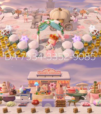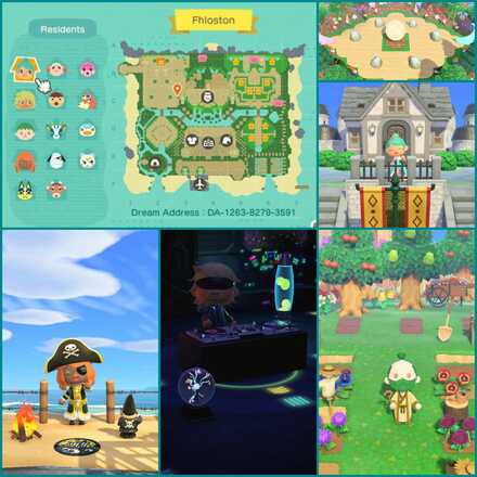 DA-1263-8279-3591 Made themed sections of my island with characters to match. There is the princess and her castle, the pirate queen and her hidden hideout, the peaceful farmer with his bees, and the tech mogul with his house in the suburbs. I recently bulldozed this island to work on a totally new theme with new characters and villagers so the only way to see it now is via dream. Will be uploading the new one in another 400 hours or so. :)