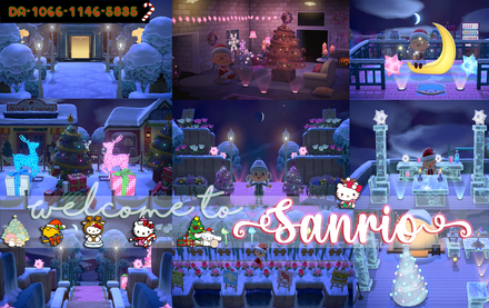 Welcome to Sanrio's Winter Wonderland! A 1200+ hours, 5-star, Sanrio-inspired island! Come visit this colorful Christmas world with 3 fully-decorated S-Rank houses along with an amusement park, a beach-side resort, a shopping mall, and lots of waterfalls! Gifts are provided to help you experience the Holiday season in Sanrio. DA-1066-1146-5835