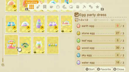 The egg party hat and dress are unlocked once you unlock all of the recipes for the egg shell hats, dresses, and shoes