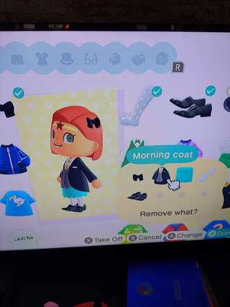 I got Theatrical as my theme and she gave me a tuxedo jacket. I paired it with strappy heels, a flashy hairpin, and school pants and she passed me. Gave me a Labelle hat. I have previously gotten sunglasses from her, sporty looking hats, a red shirt, and a maroon coat.