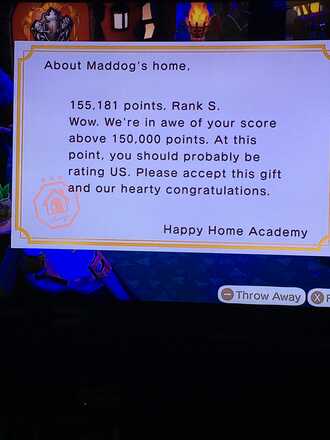 I received 153,020 points. "At this point, you should probably be rating US." I only got the gold trophy house as a gift.