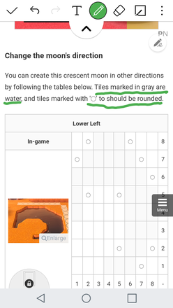Can someone please fix the crescent moon charts about changing directions? The header of that section says that the gray squares are water and the circle is the angled squares, but either there is no gray shading or it blends in with the white too much to make it out. Included photo to demonstrate.. instead of shading the squares, the W in them would've been more helpful.