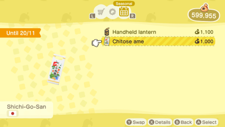 The Chitose Ame is a Seasonal Item and can be bought through Nook Shopping in the season it's available.