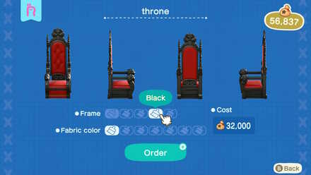 The throne can be customized by Cyrus and Reese for 32,000 bells