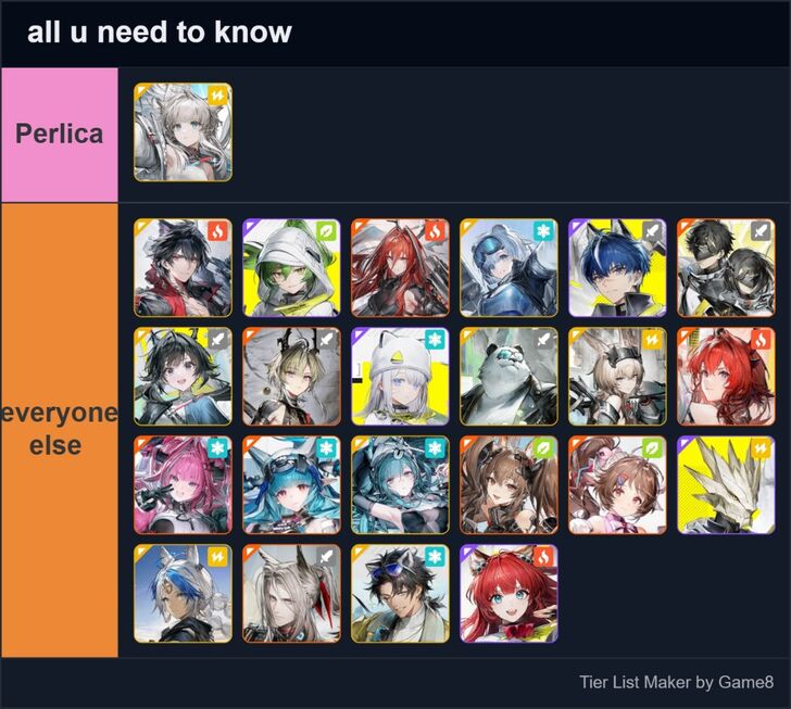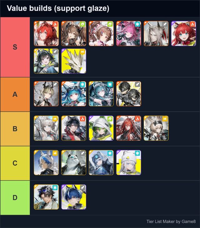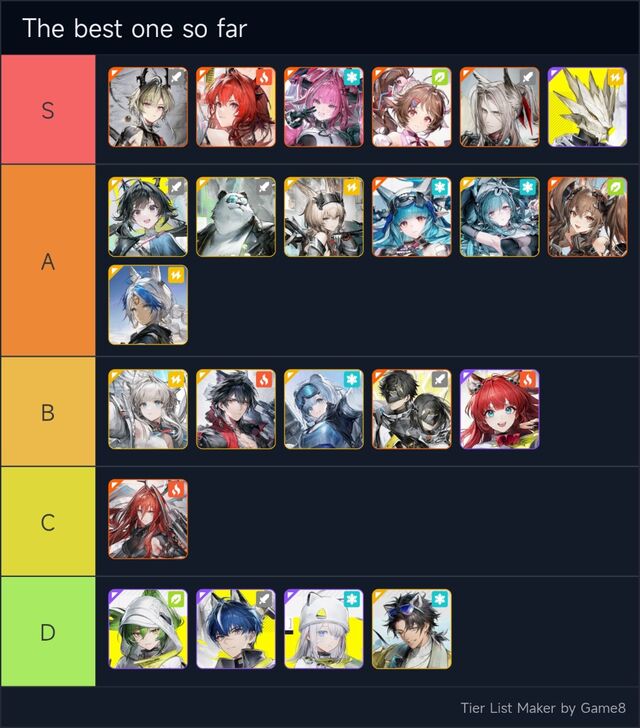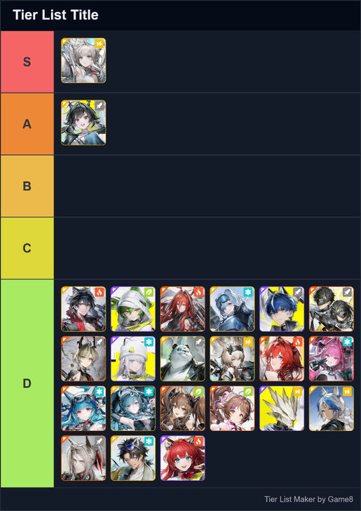 Note I have not played every character, but relatively from what I've seen from other comps I'd say it's around here, with even a chance Akekuri being able to even be A, as she's really good with Laevatain, I just lowered her to B cause I don't find her as good as Wulfgard and Ardelia which are the other 2 in Laevatain's team, as for Yvonne I been playing her with Alesh, Flourite and Ardelia (was with Xaihi before getting Ardelia) and she still felt strong without having Gilberta and Last Rite.