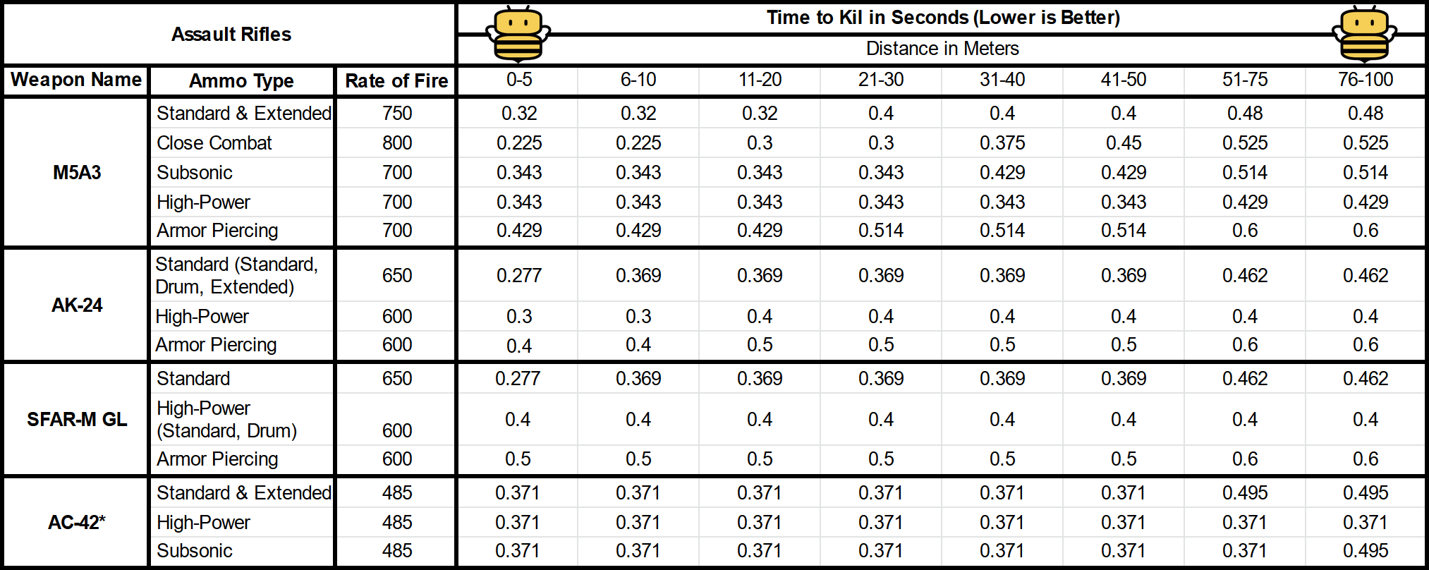 *The in-game value for the AC 42 Rate of Fire is incorrect due to its burst fire mechanic. We've added our own Rate of Fire value based from tests.