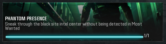 There is another objective that I guess could be considered "secret," it wasn't available until I got it. It's the "Phantom Presence" challenge which is "Sneak through the black site intel center without being detected in Most Wanted." You don't have to stealth the entire time, only until you get to Adler. And you don't have to kill everyone on the way there, just enough for you to get through.