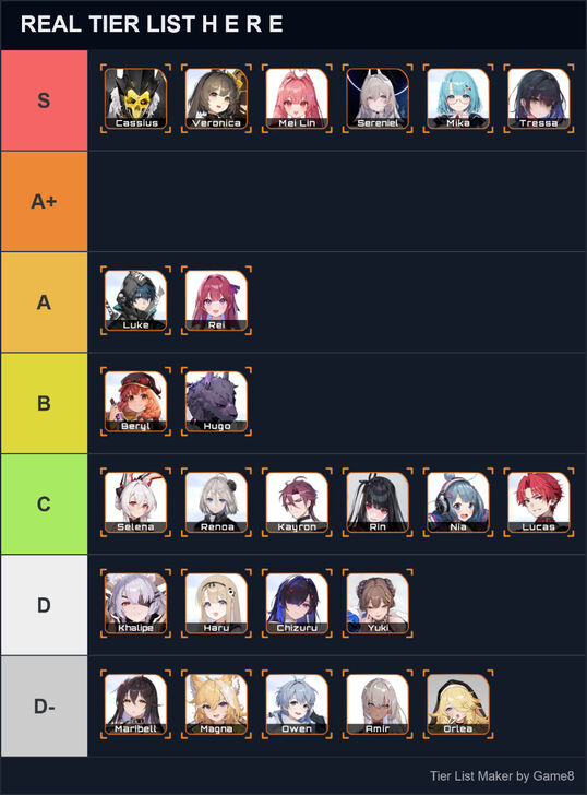 THE ULTIMATE tier list is BACK! We got Sereniel NOW!, she ACTUALLY STRONK! Sereniel is ALONE ON A+ TIER bettah than LUKE! Nia went a tier UPPIE because she GOOD on leader-board. HUGO MAY DROP; he kinda weak now that he lost TRESSA, but she gonna get nerfed with cazzius they way too OP Need more TEST on Sereniel she maybe can join the BIG 5, but so far she good really good unlike other chars Yuki, Chiz and Haru TOO WEAK NO META! and Khalipe not good also.