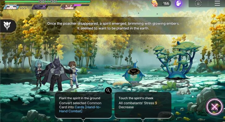 Seed of the Forest event in scenario 2 gave me the choice between: 1) -9 stress for team 2) convert a selected common card to a rare neutral card