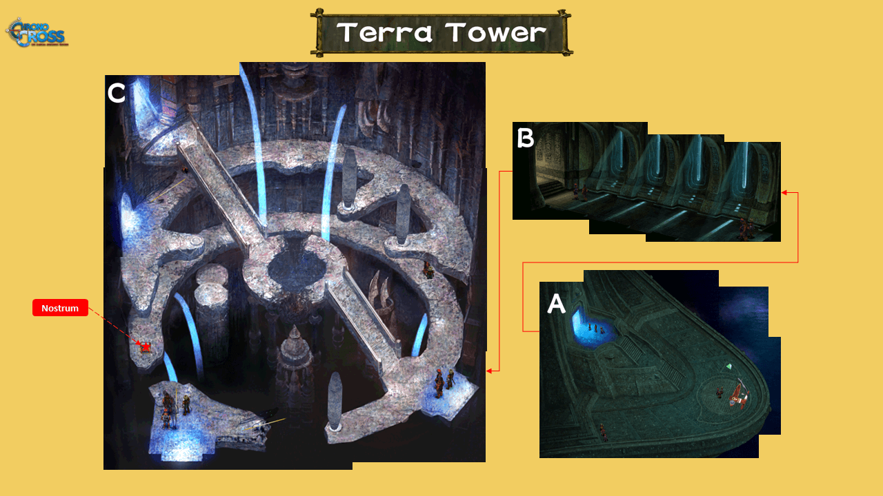| 12 | ![]() ・Take the Teleporter After defeating the Anemotor, use the teleporter to head to the upper portion of Terra Tower. Save your progress here as you'll need to defeat the enemies in the left and right rooms to proceed. |