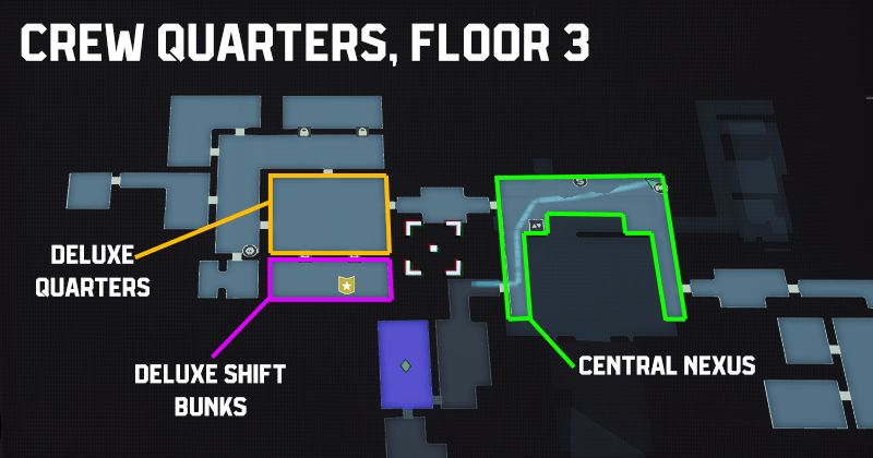 To access the Deluxe Shift Bunks, players will need to reroute power from lights to the doors inside the Deluxe Quarters of the Crew Quarters Deck. Once done, head inside the Deluxe Shift Bunks room to find the chest.