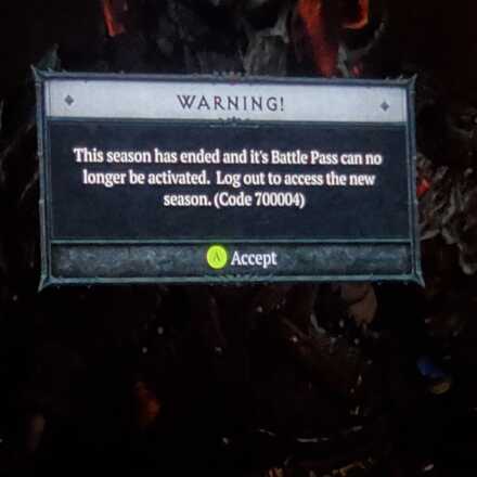 I am experiencing the following error: "This season has ended and its Battle Pass can no longer be activated. Log out to access new season. (Code 700004)." I've logged out twice and am still getting this code.