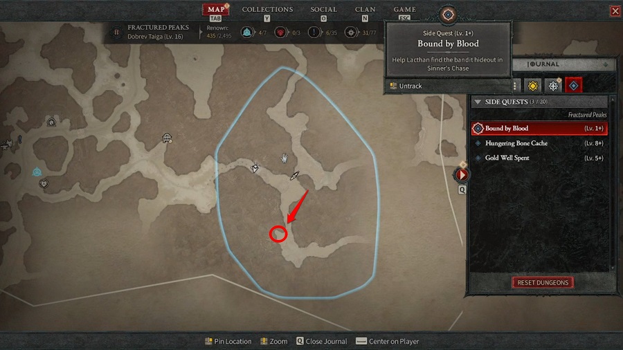 | 9 | ![]() Bring Lacthan to the bandit's hideout location to unlock the Cutthroat's Escape entrance. |