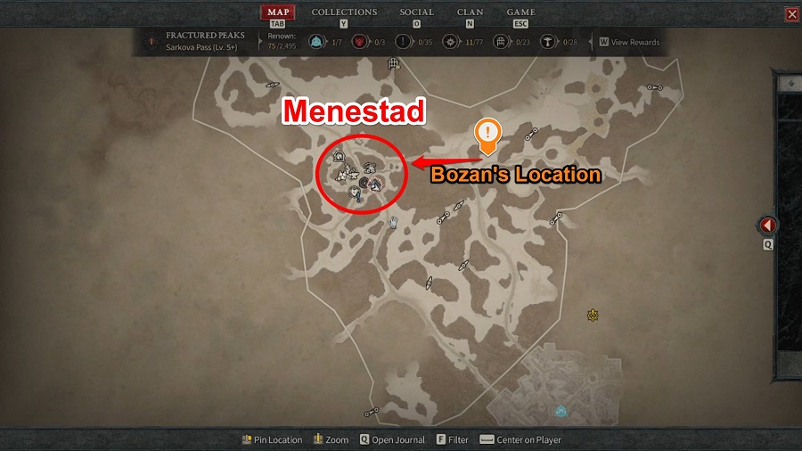 | 2 | ![]() Head to this specific location within the highlighted area to locate Bozan. |