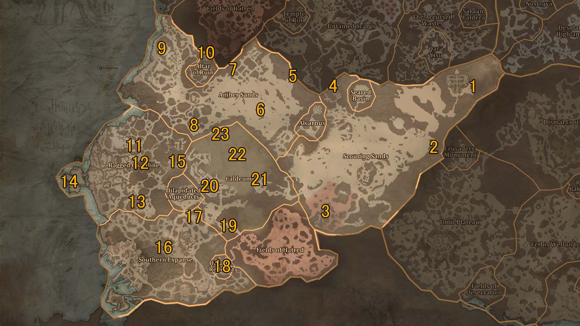 Kehjistan is one of the five major regions in Diablo 4 (D4). Check out our interactive map and Renown guide for Kehjistan, and learn more about its waypoints, Strongholds, Side Quests, Dungeons, Altars of Lilith, World Bosses, and Events!