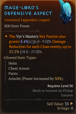 It has been changed to a Defensive Aspect. Helm Pants Chest and Amulet only.