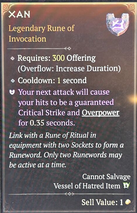 You might consider adding the XAN rune to your list. Legendary Rune of Invocation...