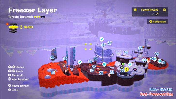 Freezer Layer is the sixth layer in Donkey Kong Bananza. Check out where to find the locations of all Freezer Layer Bananas, fossils, and other collectibles in this level!