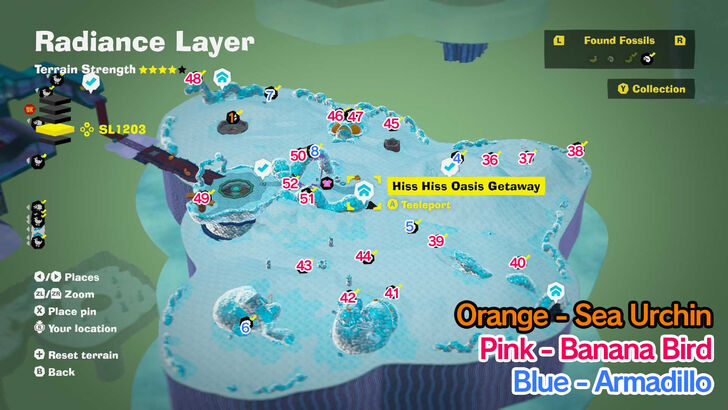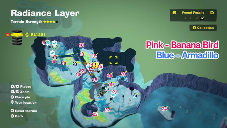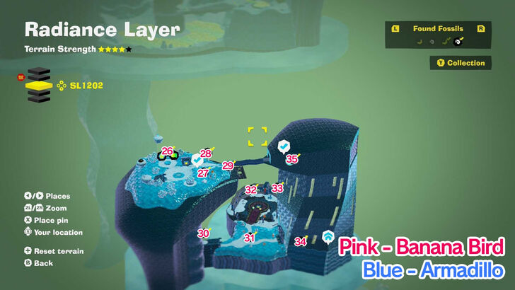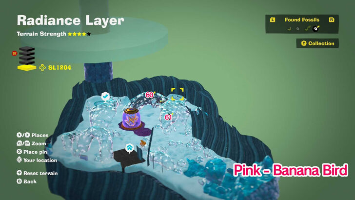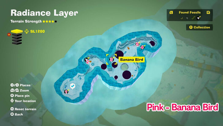 There are 76 bananas and 72 fossils available in Radiance Layer.