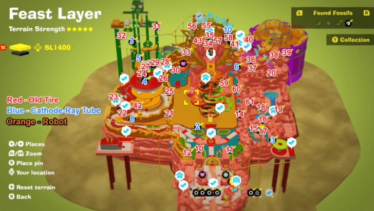 Feast Layer is the fifteenth layer in Donkey Kong Bananza. Check out where to find the locations of all Feast Layer Bananas, fossils, and other collectibles in this level!