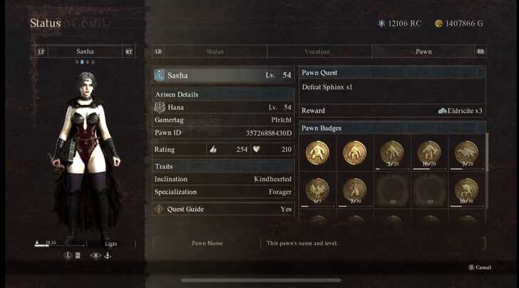 Xbox - Name: Sasha - Level: 54 - Vocation: Mage (full support) - Inclination: Kindhearted - Specialization: Forager - Skills: High Palladium, Ice Affinity, High Celerity, Celestial Pean - Pawn ID: 357268S8430D (it’s zero) - Gamertag: Plrlcht - Quest: Kill Sphinx Reward: Eldricite x3 Legion's Might (self res), 2x Ring of Recitation (faster casting)