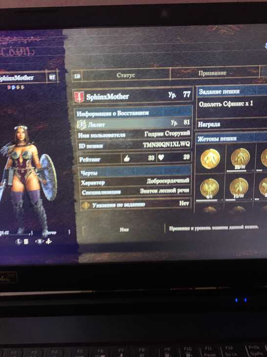 Pawn: SphinxMother Level:87 Vocation: Warrior(with fully upgraded equipment wyrmforged dwarven style); Specialization: woodland wordsmith Pawn ID: TMN30QN1XLWQ