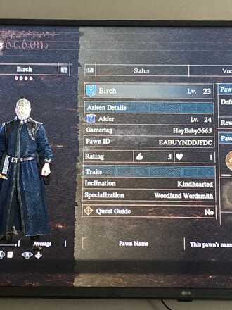 Name: Freya Level: 29 Vocation: Sorcerer Inclination: Kindhearted Skills: Meteoron, Maelstroms, High Levin Pawn ID: GR5CG1963E26 Platform: PS5