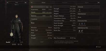 | 2 | Go to your own Pawn's Status screen. This should be the tab to the right of your Arisen with a blue hand icon. |