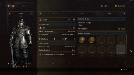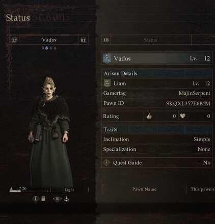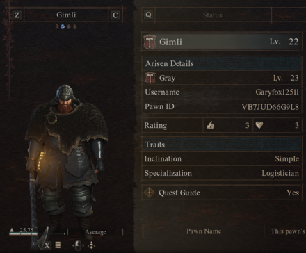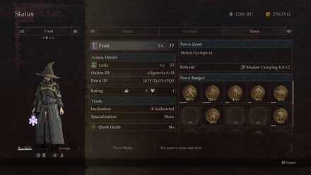 | 2 | Go to your own Pawn's Status screen. This should be the tab to the right of your Arisen with a blue hand icon. |