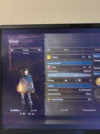 Platform: PC/Steam Name/Moniker: Casca /Hawk Vocation: Archer Level: 14 Inclination: Kindhearted Specialization: None ATM Pawn ID: HOK47014EJME Steam friend code: 89724475 Really hope you’ll like Casca from Berserk fame. She’s an awesome pawn and companion and I think you’ll absolutely love her if you give her a try.
