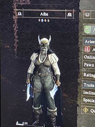 **Name:** Alba **Vocation:** Thief **Level:** 27 **Platform:** PS5 **Pawn ID:** P1EEIVSQYSXJ **PSN:** Broke-_-Nibba **Inclination:** Simple **Specialization:** TBD **Augments:** Gratification,Vigor,Poise **Height:** 190cm **Weight:** 96kg