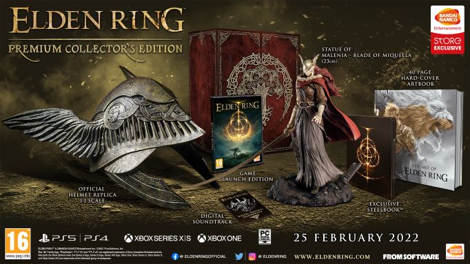 The Elden Ring: Premium Collector's Edition includes the physical copy of the game, or the game code for PC, a life-size replica of Malenia's Helmet and a Malenia Statue.