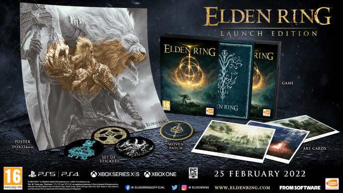 The Elden Ring: Launch Edition includes the physical copy of the game, as well as a steelbook, art cards, game poster, sticker set, and woven patches. The Digital Adventure Guide and 'The Ring' gesture are also unlocked upon purchasing this edition.