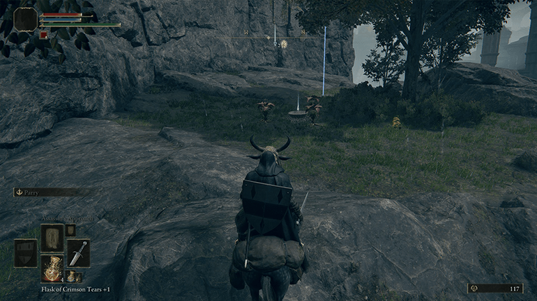 You can find the Faith-knot Crystal Tear on the east side of the Church of Pilgrimage. You will need to defeat the plant-like enemies that are guarding the item to pick it up from the large bowl.
