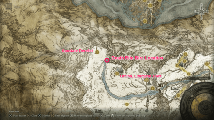 This Death Rite Bird appears only at night at the end of the frozen river near the Apostate Derelict site of grace, northwest of the Mountaintops of the Giants region. Defeat the Death Rite Bird and you will obtain the Explosive Ghostflame spell.