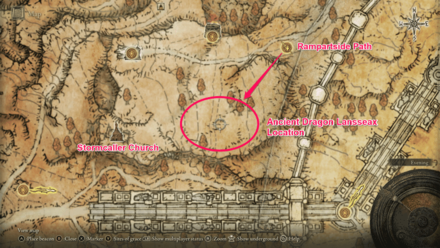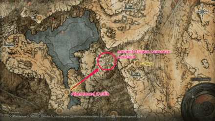 You will encounter Ancient Dragon Lansseax twice as you journey across the Altus Plateau region. During your first encounter near the valley, northeast of the Abandoned Coffin site grace, Lansseax will flee if you manage to drain at least a third of its HP.