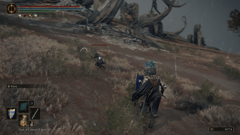 Vulgar Militia are small humanoid mobs that are equipped with blackish-green garb and wield flails or sickles. They are easiest to farm outside of the Bestial Sanctum in Caelid, as there are several of them here.