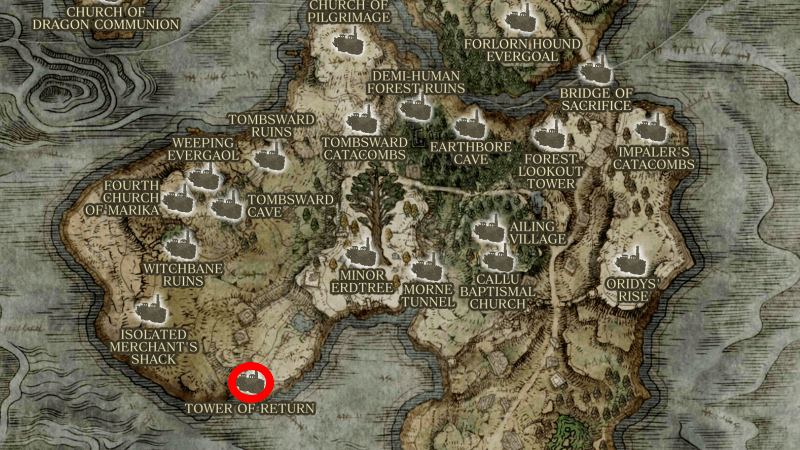Tower of Return is a Point of Interest in Elden Ring that can be found in Limgrave. Read on to learn more about Tower of Return, including its location on the map, what to do here, and obtainable items!