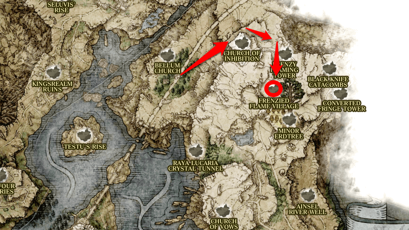 Frenzied Flame Village is a Point of Interest in Elden Ring that can be found in Liurnia of the Lakes. Read on to learn more about Frenzied Flame Village, including its location on the map, what to do here, and obtainable items!