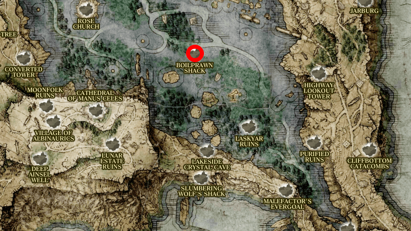 Boilprawn Shack is a Point of Interest in Elden Ring that can be found in Liurnia of the Lakes. Read on to learn more about Boilprawn Shack, including its location on the map, what to do here, and obtainable items!