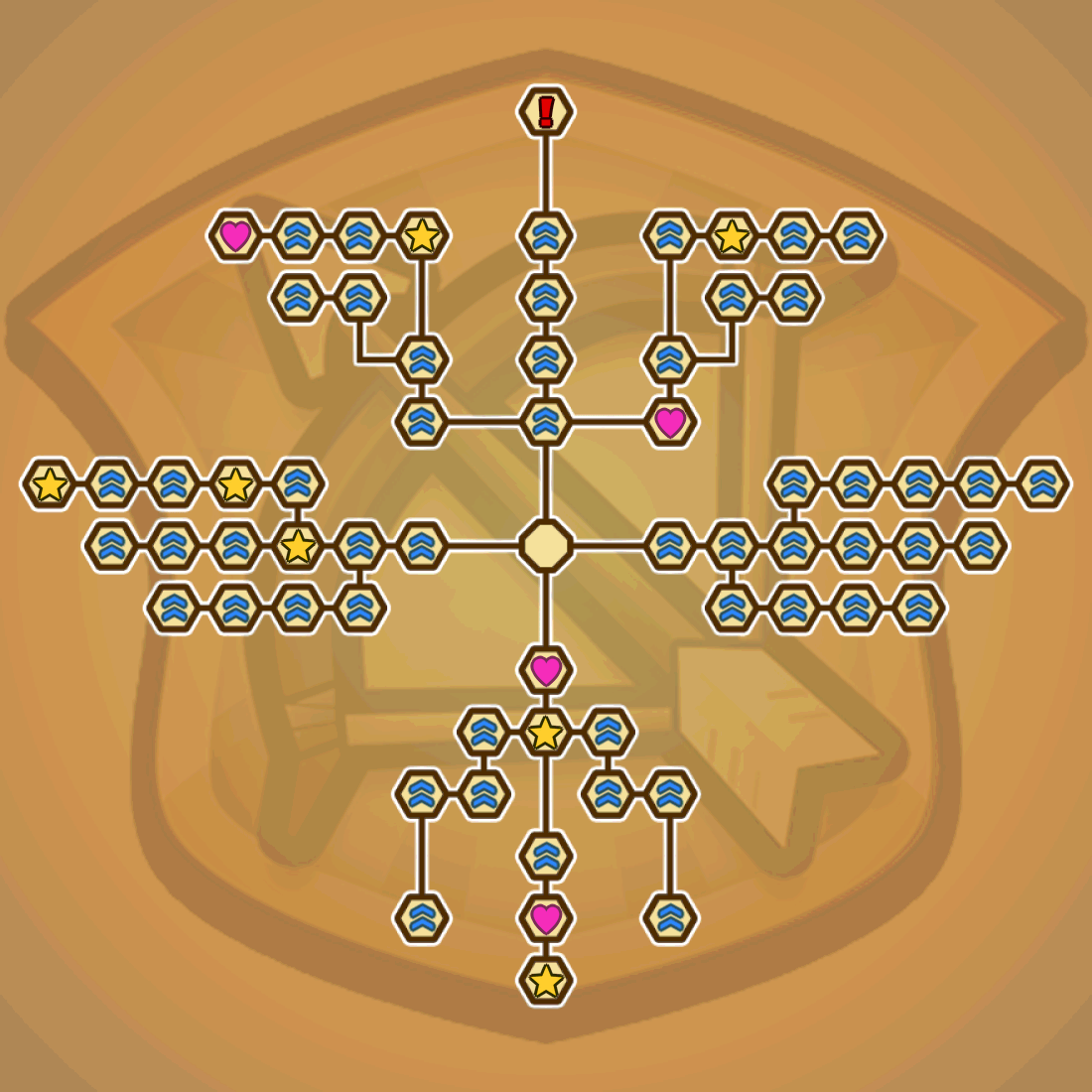 ♥ = Prioritize Getting these Skills when available ★= Other Skills you can unlock, but no need to rush unlocking ! = "???" (Final Skill you'll unlock) Chevron = Stat Buffs (Used to unlock more panels) |