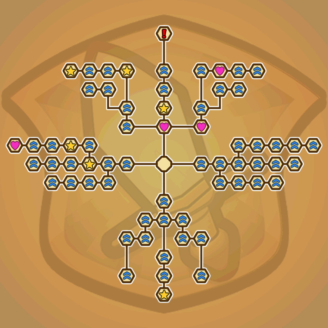 ♥ = Prioritize Getting these Skills when available ★= Other Skills you can unlock, but no need to rush unlocking ! = "???" (Final Skill you'll unlock) Chevron = Stat Buffs (Used to unlock more panels) |