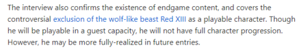 Have you seen? Red's going to be playable? Here's the source: https://www.gamespot.com/articles/final-fantasy-7-remake-has-endgame-content-is-as-b/1100-6475088/